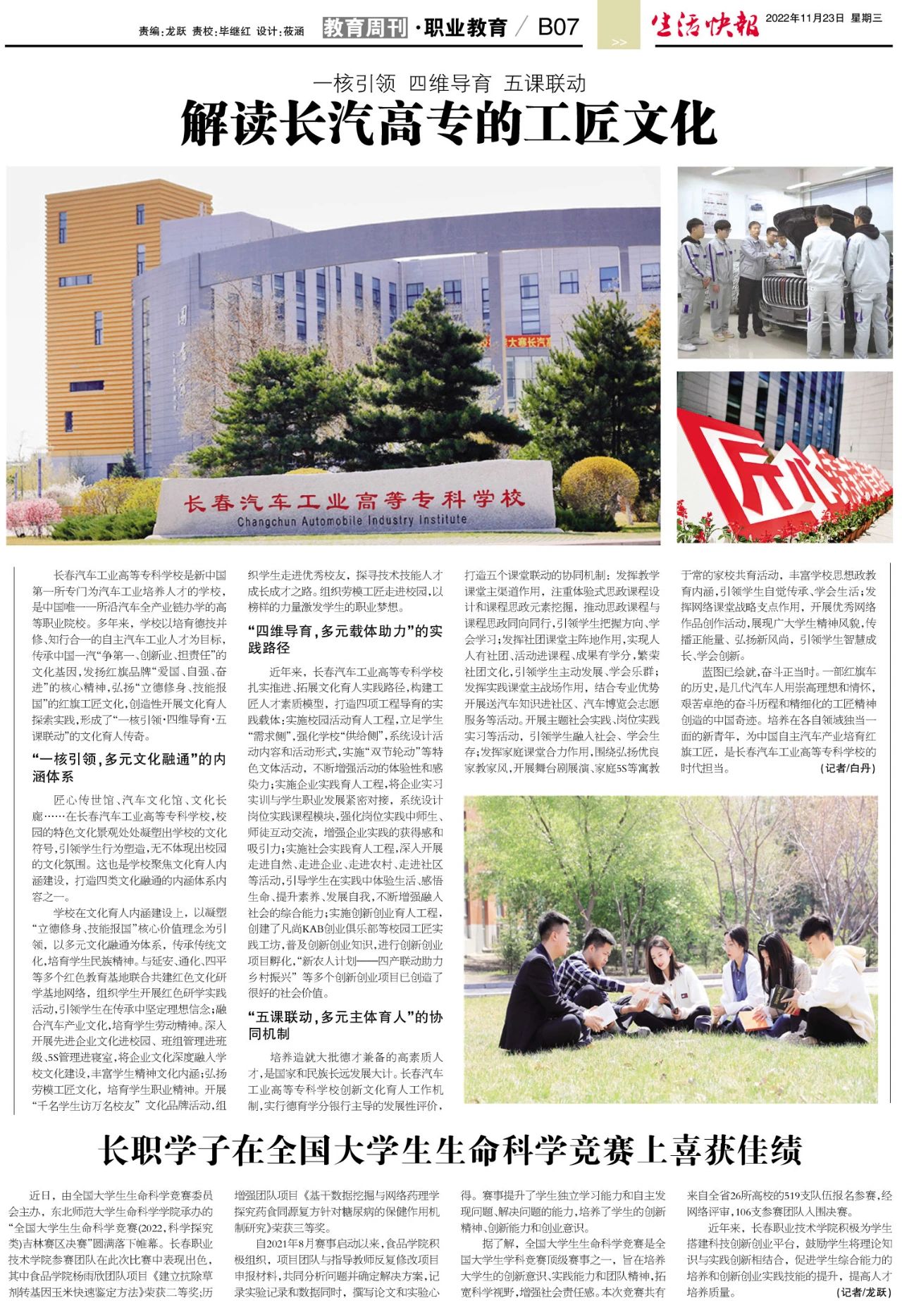 生活快报——一核引领·四维导育·五课联动 解读长汽高专的工匠文化