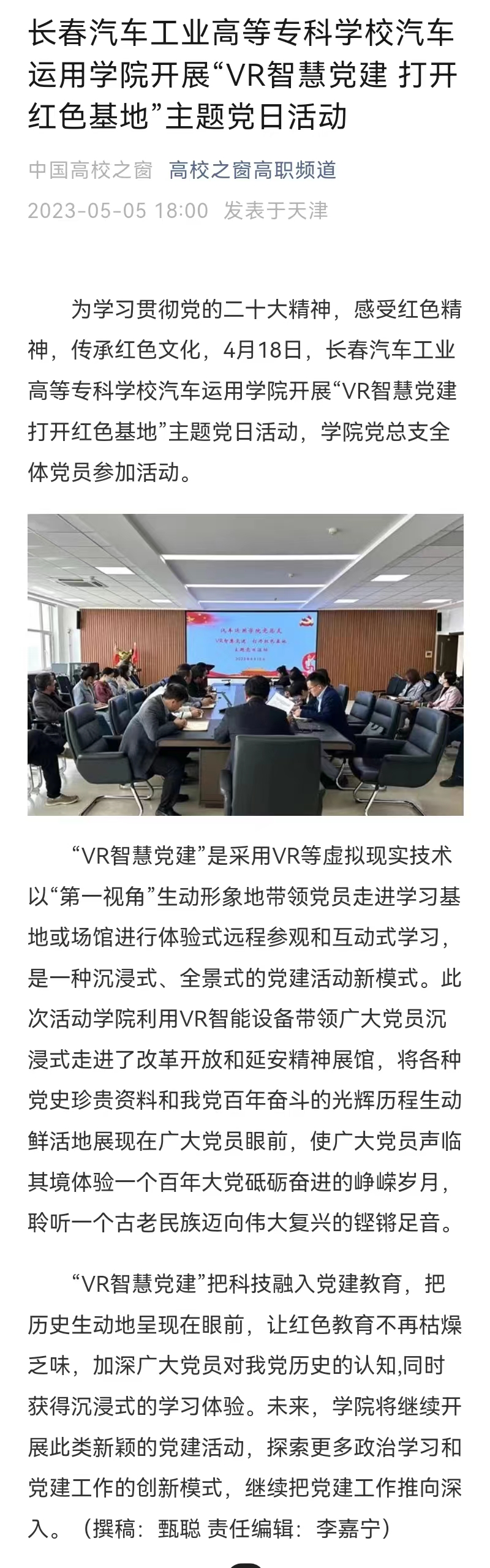 中国高校之窗——长春汽车工业高等专科学校汽车运用学院开展“VR智慧党建 打开红色基地”主题党日活动