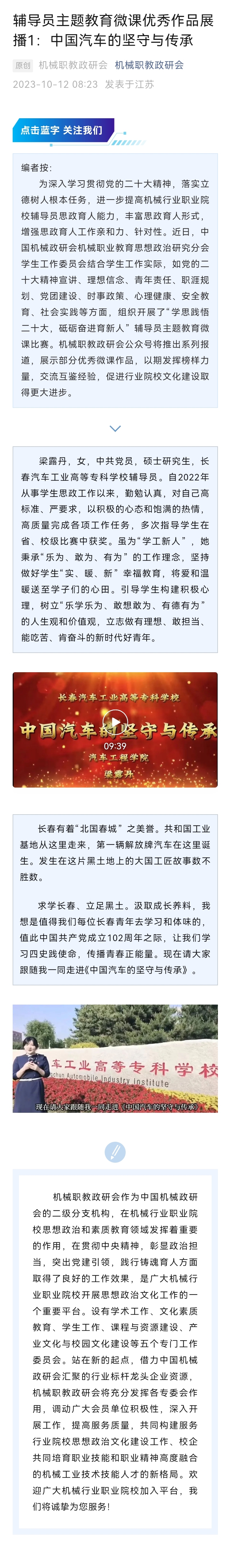 机械职教政研会——辅导员主题教育微课优秀作品展播1:中国汽车的坚守与传承
